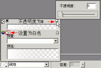 7。設置左邊的顏色塊顏色為白色,右邊透明塊的不透明為0。