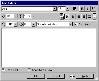 文本編輯對話框(Text Editor)對文本的風格和樣式有著豐富的控制功能。它同大部分的文本處理工具類似,