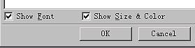 在對話框的空白區域輸入文字要想立即看到文本編輯的效果,可選中對話框下面的"Show Font "與"Show Size & Color"兩個復選框,再選中"Auto-apply"復選框,如圖: