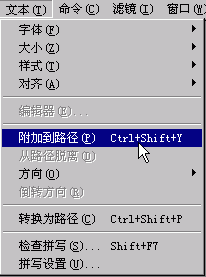 11.打開菜單欄的“文本”菜單,單擊“附加到路徑”。