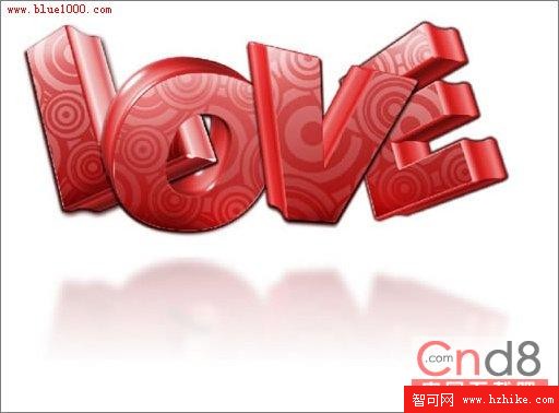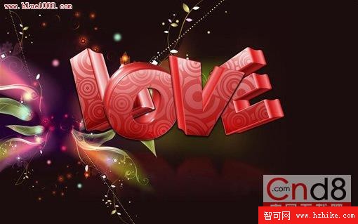 同樣制作love,並加上投影。加上花紋,花紋很簡單,去網上找潮流花紋,一大堆,用AI打開,直接復制到Fireworks裡是矢量路徑,然後用備份過的文字面(就是扣出來的那部分)作為蒙版遮罩,平面化所選後再加蒙版作出漸變效果,並調整透明度。(圖11)