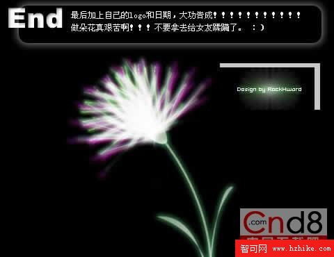 End最後加上自己的logo和日期,大功告成!!!!!!!!!!!做朵花真艱苦啊!!!不要拿去給女友蹂躏了。 :)