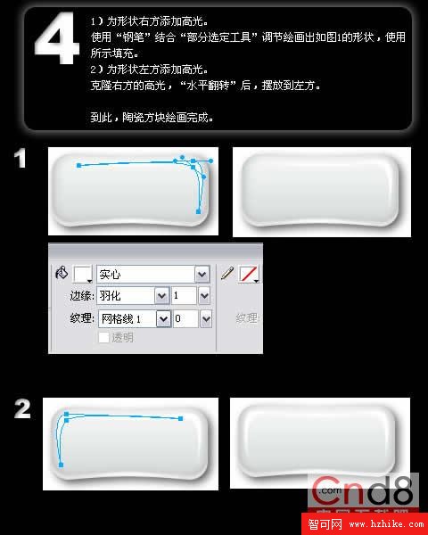 使用“鋼筆”結合“部分選定工具”調節繪畫出如圖1的形狀,使用所示填充。