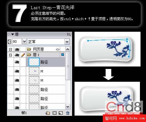 克隆右方的高光,按ctrl+shift+↑置於頂層,透明度改為80