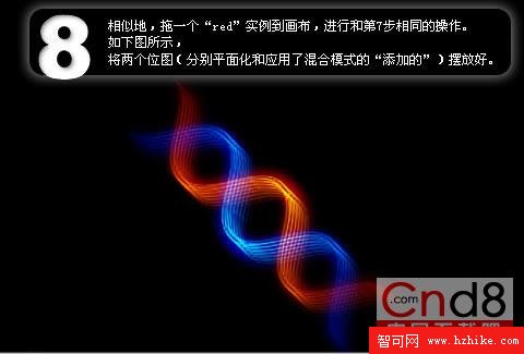 如下圖所示,將兩個位圖(分別平面化和應用了混合模式的“添加的”)擺放好。