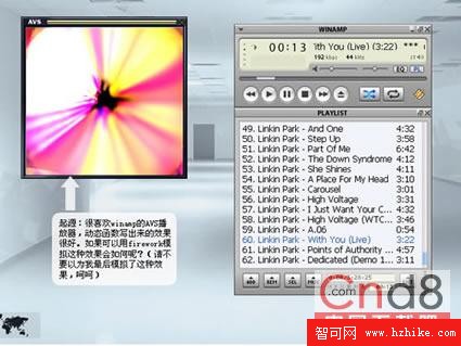 起源:很喜歡winamp的AVS播放器,動態函數寫出來的效果很好。如果可以用Firework模擬這種效果會如何呢?(請不要一位我最後模擬了這種效果,呵呵)