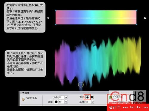 用“塗抹工具”對已經平面化的矩形進行塗抹。塗抹的屬性我用的是下圖所示參數。