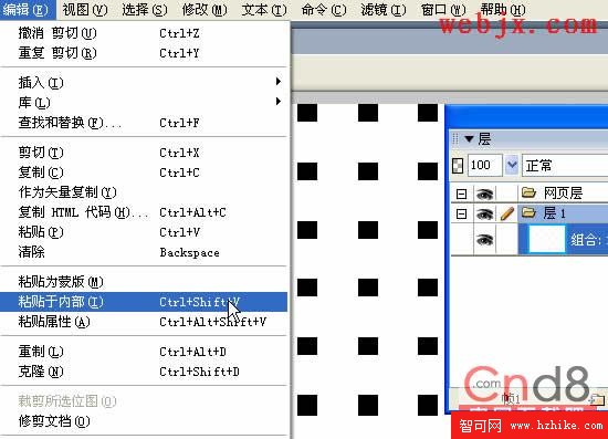 全選,注意:導入的那個位圖可不要選入進去,然後執組合(Ctrl+G),見層面板,然後選擇蹈入的那幅圖片按Ctrl+X剪切,然後選擇剛才組合的那個層,執行下圖所示操作: