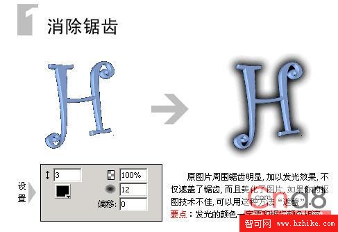一、用Fireworks“外發光”特效消除圖像邊緣鋸齒