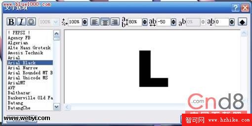 1.按Aa,打入自己需要創作的文字,並設置字體。這裡我輸入了L 字體為Arial Black;