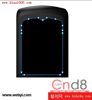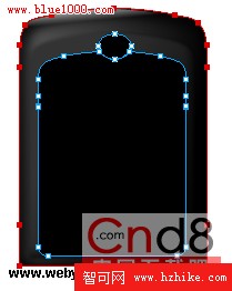 5、接著我們開始為顯示屏輪廓做造形,再次復制一個機蓋,縮小一點,再在頂部繪制一個小圓,使用修改-組合路徑-打孔來做機蓋顯示屏輪廓。)