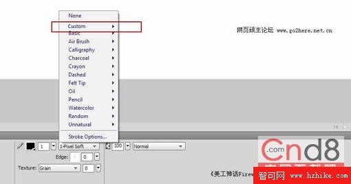 1、自定義筆刷,Fireworks CS5終於能夠像他的老大哥PhotoShop那樣自定義筆刷樣式了,甚至在Fireworks CS5中可以導入Photoshop和illustrate所定義好的筆刷效果。