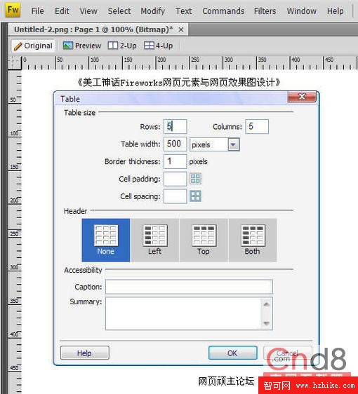 3、支持表格布局,可以使用類似於Dreamweaver的表格工具在Fireworks CS5中直接繪制表格。
