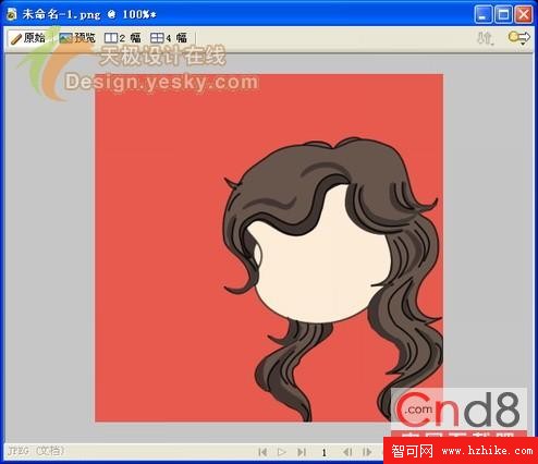 4、為了讓頭發有高光的效果,從而顯得更加有層次,我們可以在這個基礎上添加一些曲線和較深一點的顏色,其中較深顏色的區域也是由矩形或者橢圓等規則形狀進行變化得到的,最終得到如圖4所示的效果。