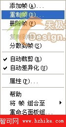 10、單擊【幀】面板右上角處的小黑三角,出現彈出菜單,選擇【重置幀】這個選項,如圖10所示。