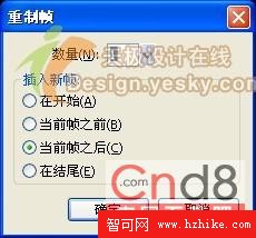 11、選擇以後就會出現一個對話框,要求輸入幀的數量以及確定幀的位置,我們選擇添加1幀,並且插入在當前幀之後,如圖11所示。