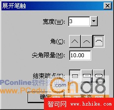 回到畫布區中,點選原裂縫路徑後,通過菜單“修改——改變路徑——擴展筆觸”命令,打開“展開筆觸”設置窗口,在“寬度”輸入框中設置該路徑的擴展數值為3,其它設置如圖06所示。