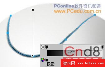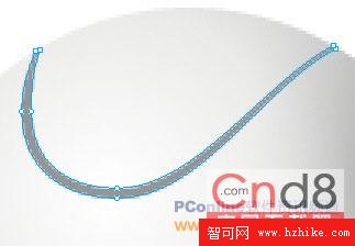 在“層”面版中恢復顯示剛才被我們隱藏起來的“復制的裂縫路徑”。我們將借用這條路徑來繪制裂縫在凹入時的深黑效果。點擊“修改——改變路徑——擴展筆觸”菜單命令,在“展開筆觸”設置窗口中設置該路徑的擴展寬度數值為1。而其它設置則保持不變。然後同樣用“部分選擇”工具將這條裂縫兩端的寬度進行適當地縮小。完成後在“屬性”面板中為這個對象使用無描邊色的“線性”漸變填充。效果如圖09所示。其中左右兩個線性漸變的顏色滑塊色值分別為:#000000和#CCCCCC。