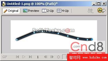 (1) 新建一個文件,然後選擇工具箱中的鋼筆工具,在繪圖區中繪制出一條路徑,如圖1所示。
