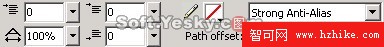 選中附加到路徑上的文本在屬性面板的“Path offset” (文本偏移)文本框中輸入需要的偏移量即可改變文本的其實位置,如圖4所示。得到圖5所示圖像。