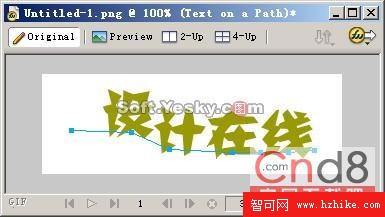 輸入的文本一般總是位於一個矩形的文本框中,很多情況下我們需要繪出動態的文本。為達到這個效果,我們可以繪制一條路徑,然後將文本附著於路徑之上,文本將隨著路徑的改變而改變。不過此時路徑又失去了筆觸、描邊、填充等路徑屬性。下面我們具體看看Fireworks中文本和路徑的結合操作可以實現哪些靈活豐富的效果。