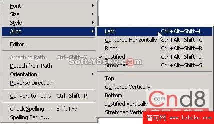 通過選擇“Text>>Align”菜單中適當的選項,可按路徑排列調整文本的對齊方式,如圖11所示。