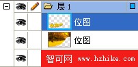 7、分別(或同時)選定編輯區的位圖對象和文本對象,按“Ctrl+Shift”鍵克隆它們,此刻可以看到層面板上共有四個對象,如下圖所示。