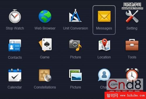 下圖是國內知名的eico design所創作的一套圖標,我們要臨摹的對象就是圖中被框住的信封圖標。事先說明一下,因為教程的主題,我們會對這個圖標加入一些細節,因此我們的最終臨摹結果會與原圖不太一樣。