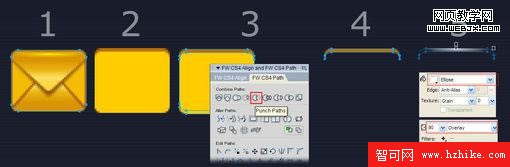 我們選中並復制最底的圓角矩形兩次,移動位置後得到兩個上下相隔2px的圓角矩形,用兩個矩形路徑相減的方法得到一個新的路徑,對其進行Ellipse填充(白色0-100透明度),最後把這個高光路徑的疊加方式設置為Overlay。