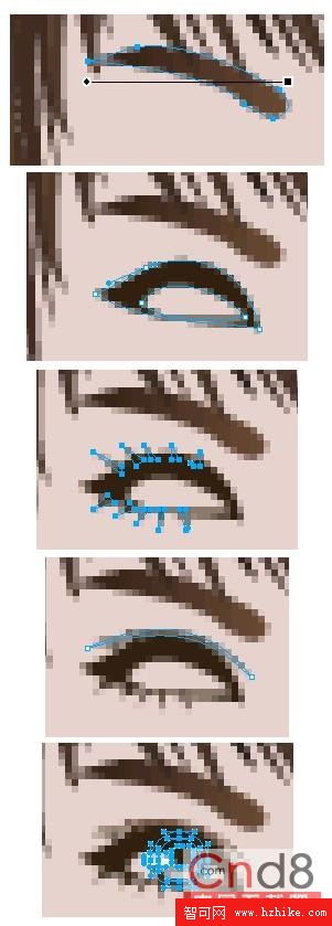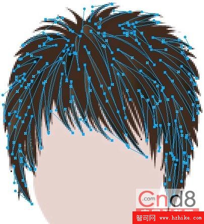 1、在Fireworks中用路徑勾畫臉部、頭發的形狀(如下圖)