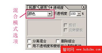 6、在“透明度”面板裡面將後做的兩個“染色層”的混合模式改成“顏色”。這樣此層與下層的作用效果就變成了:下層與上層重疊部分取上層的顏色。這樣做的好處是以後需要改變顏色只需要改變顏色層,而不必每次都鬧心的去編輯漸變了。