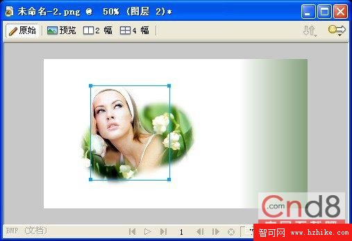 17.選擇【修改】【變形】【水平翻轉】命令,改變模特素材的水平方向。並且使用【縮放】工具適當調整圖像的尺寸,對齊到相應的位置。