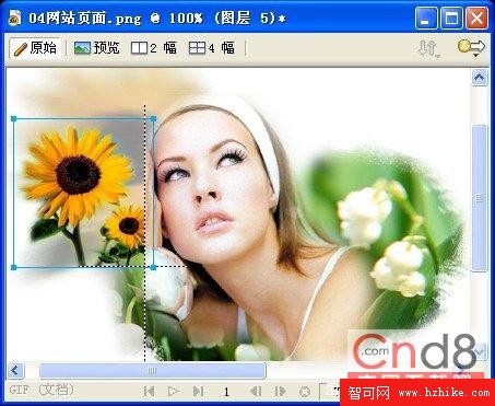圖1.22 縮小向日葵圖像的尺寸,並且移動到相應的位置