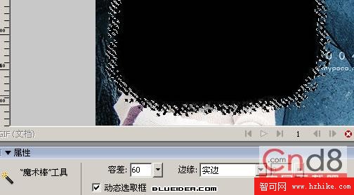 8、選擇魔術棒工具,設置[容差]60,[邊緣]為[實邊],在路徑的填充顏色上單擊,獲取不規則邊緣的選區,再選擇[選擇]菜單的[選擇相似]命令;