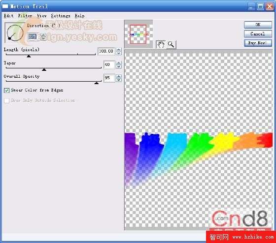 4.選中平面化後的文字,選擇菜單命令“濾鏡|Eye Candy 4000 LE|Motion Trail...”,打開“Motion Trail”濾鏡設置對話框,如圖5所示。