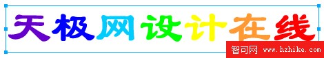 2.在文本框中選中“天”,將顏色改為紫色,再選中“極”,改為藍色,依此類推,將七個字的顏色分別改為紫、藍、青、綠、黃、橙、紅,即七彩虹的顏色,結果如圖3所示。