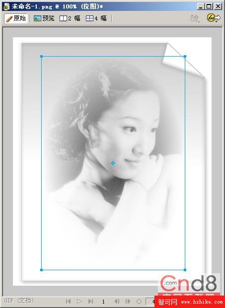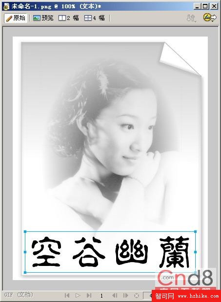 17)在屬性面板中修改文本顏色為白色,並為其添加投影效果,最終得到圖 21 所示的卷邊黑白藝術照片,是不是很有感染力呀?