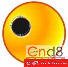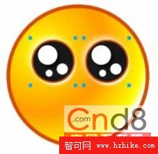 11、同時在屬性面板中把白色正圓的填充邊緣效果設置為“羽化”,值為“8”。並且適當往右下角移動,這樣可以使眼睛看起來更有立體的感覺。效果如圖1.8所示。