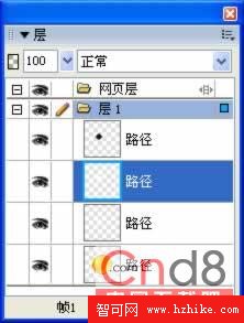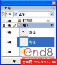 12、再次把這黑色的眼睛復制一個,同樣選擇兩個正圓下方的一個,把顏色更改為白色,去掉邊框顏色。這時的圖層效果如圖1.9所示。