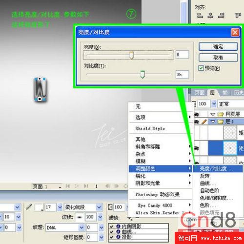 7、選擇亮度/對比度,參數如下,這樣就成形了。