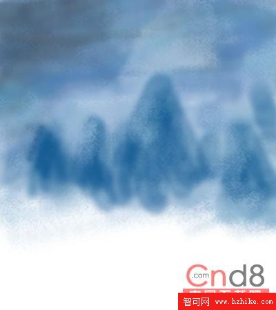 3.使用「毛刷」和「柔化圓形」繪制遠山的輪廓。