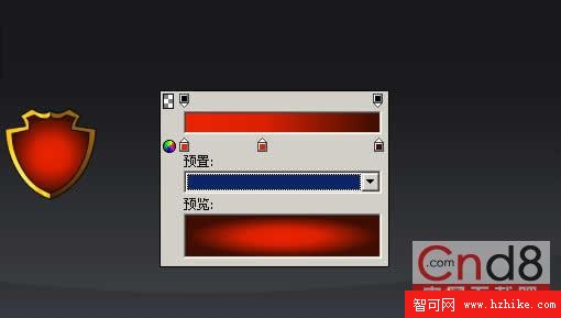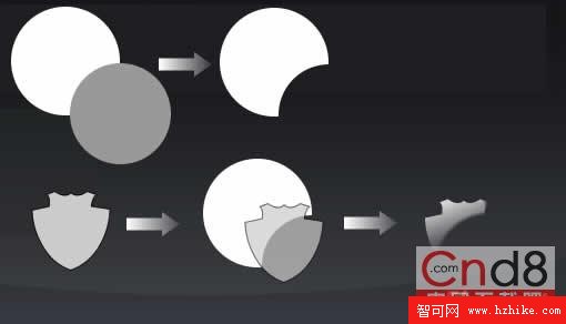 7.(此處一步是小編加進去)通過路徑組合打孔得到月牙形,然後和開始畫的盾的路徑組合為蒙板,然後再進行線性漸變,得到高光部分。