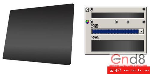 1. 先繪制一個矩形,並通過部分選取工具調節節點。為增加立體效果,每個角均通過鋼筆工具增加為2個節點