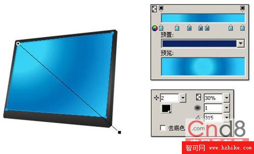 4. 復制矩形並縮小,作為內框屏幕,實用發射性漸變,添加內部陰影