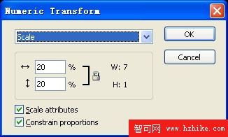 選擇Modify(修改)-Transform(變形)-Numeric Transform(數值變形),輸入20,將圖像縮小20%。