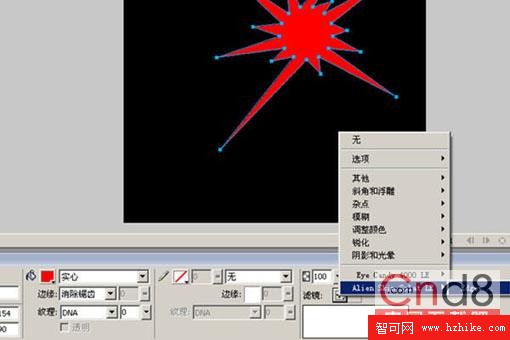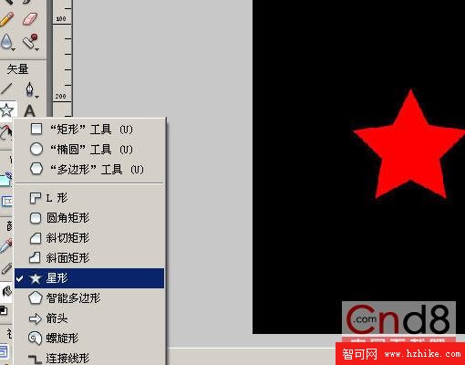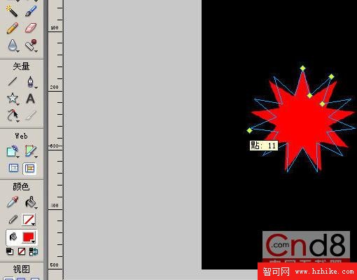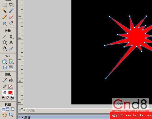 1、使用Fireworks矢量造型工具下的星形工具繪制一個星星,並選擇填色為紅色。