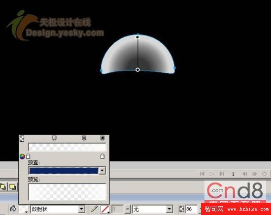 3、在半圓上同樣選取‘放射狀’填充,顏色全部選擇白色,但透明度要選出三個點,其透明度依次為25、63、100,要注意三透明度的位置,靠近中心的透明效果要多些,這樣主要是為了渲染圖表上面部分的立體水晶效果。如圖