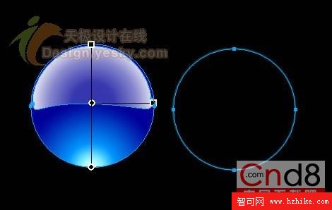 4、為了顯示出圖標的輪廓,使得效果飽滿,再要畫出一個空心的圓線,顏色可以選取淺藍#00CCFF,再將它的透明度調整為40%。如圖