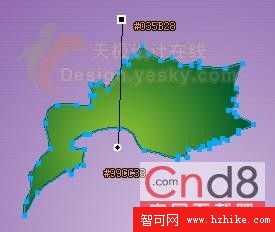 2.接下來肯定是用鋼筆工具(筆尖大小2,實線,顏色#18593B)勾勒出葡萄葉子了,依然是放射狀填充,填充顏色#99CC33,#035B28,顏色調節如圖2,這裡沒什麼特效可言,基本就是鋼筆練習和填充練習了。