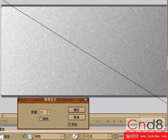 1.先建立一個寬800高310的文件(我是這樣做D,你也可以自由設置)。在畫一個同文件大小的矩形。屬性為:充填(灰色)充填類別:(線性漸變)。在點效果→雜點→新增雜點。屬性為(數量15)得到效果如圖: